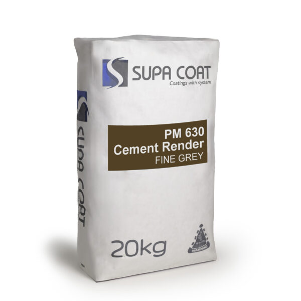 PM630 CEMENT RENDER GREY FINE is a factory blended and packaged, polymer modified cement render, manufactured to strict, quality-controlled specifications.